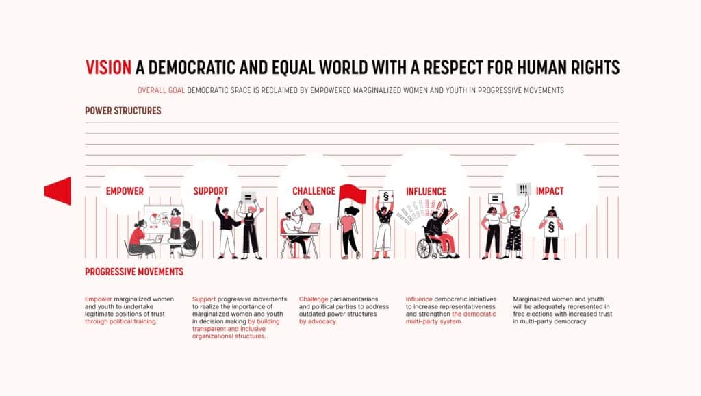 “We work especially with marginalised women and youth, supporting their active role in political decision-making. A resilient democracy requires fair distribution of resources and protection of labour rights.”